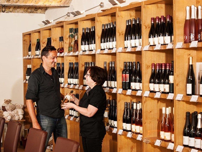 Unterhaltsame Erkundung des Weindorfes und der historischen Fleckenmauer ist an Samstagen von Mai bis Oktober möglich (wird von der Gästeführerin separat berechnet)