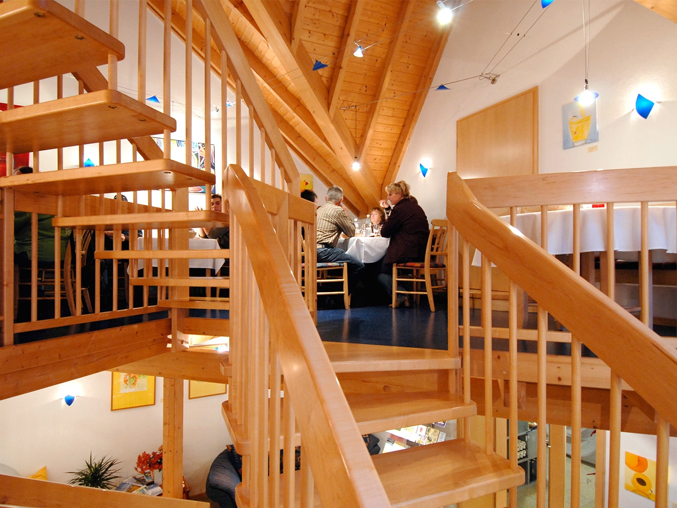Über dem Kelterhaus, wo es im Herbst nach Traubenmaische duftet, entstand ein Hort der Gastlichkeit. Schmucke Appartements - teils barrierfrei - sowie charmante Doppelzimmer: warmes Holz, mutig-kühle Stahlelemente, rauher Bruchstein der Scheunenmauer, mediterran-weißer Putz, Granitmarmorböden. Ein flirtendes Ambiente, Design fürs Dasein, verführerisches Antlitz.